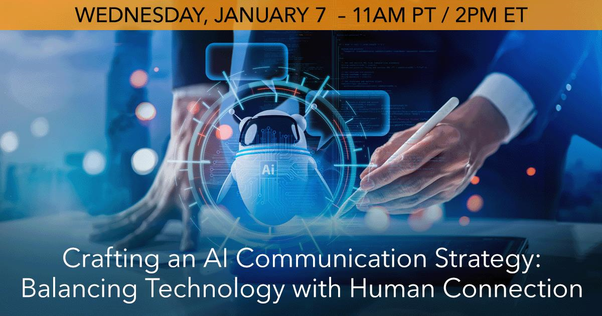Register Now to attend the webinar Crafting an AI Communication Strategy: Balancing Technology with Human Connection.